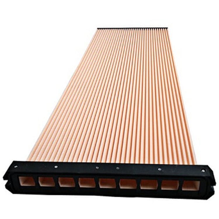 燒結板又稱燒結薄層板。將吸附劑(硅膠或氧化鋁)和玻璃粉混勻,涂布在玻璃板上,然后于高溫爐中燒結,即成燒結板。此板不僅耐熱、耐腐蝕,而且牢固,可反復使用。 含塵氣體由風道進入箱體的濾板過濾區,當含塵氣體由燒結板的外表面通過塑燒板時,粉塵被阻留在燒結板表面的PTFE涂層上,潔凈氣體則通過燒結板,并由濾板口進入箱體凈氣室后由出風口排出,附著在燒結板外表面的灰塵將隨著脈沖反吹或重力作用落入下面的灰斗。